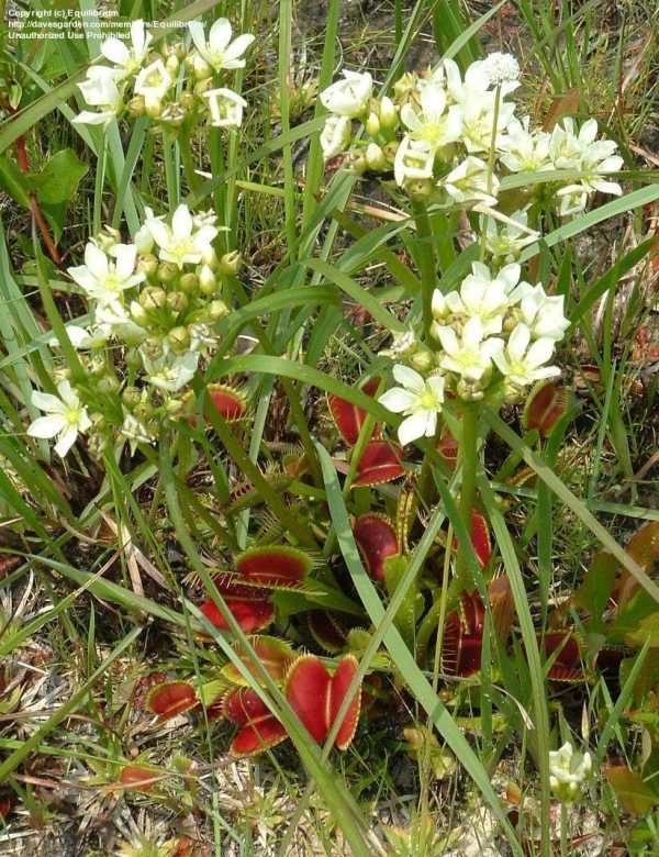Взрослый экземпляр мухоловки (она ловит и усваивает не только мух, но и комаров, и других насекомых) обычно не превышает 15 см. По весне Венерина мухоловка цветёт белыми цветками на длинном цветоносе.