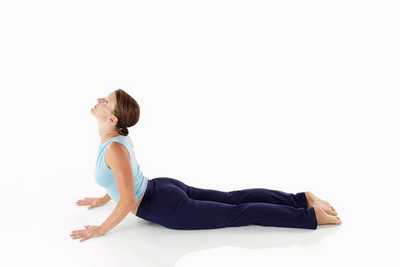 Исходная позиция: займите положение лежа на животе. Руки согнуты в локтях, локти прижаты к туловищу, ладони расположены по обе стороны от груди, голова приподнята. Сделайте 6 вдохов-выдохов. На вдохе грудная клетка за счет наполнения легких воздухом будет сама приподнимать верхнюю часть туловища, а на выдохе опускать. После этой предварительной подготовки, медленно приподнимитесь на руках и сделайте прогиб назад. Зафиксируйте положение и сделайте 6 вдохов-выдохов. На последнем выдохе вернитесь в исходную позицию.