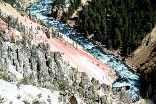 Для туристов представляет интерес река Йеллоустон. Вытекая из озера Йеллоустон, срывается сто метровым водопадом в Большой Йеллоустонский каньон.