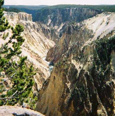 Вдохновляющее местоОт северного побережья озера вдоль реки Йеллоустоун Петля идет к Йеллоустонскому Большому каньону. Двигаясь с юга, первым делом вы увидите пенящиеся каскады Верхнего водопада высотой 33 м. Остановите машину чуть дальше у короткой тропы, которая приведет вас к Вдохновляющему, иначе Живописному, месту (Inspiration Point), откуда можно любоваться еще более величественным Нижним водопадом высотой 94 м и видом извилистого каньона длиной 40 км. У берегов реки Йеллоустон он обрывается на 360-1200 м. Стены каньона насыщены сернистым мышьяком, придающим им различные оттенки желтого цвета, которые живописно подчеркивает изумрудная зелень близлежащих зарослей широкохвойной сосны скрученной.