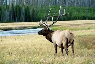 Олень вапити пасется недалеко от Мэдисона на территории Йеллоустоунского парка. С 1926 по 1935 года в рамках мер по защите поголовья вапити в заповеднике была полностью уничтожена популяция волков, после чего койот стал самым крупным хищником, охотящимся на грызунов.