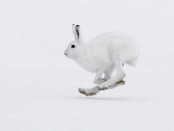 Заяц-беляк бежит.
